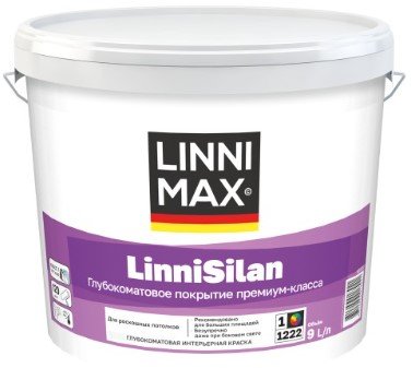 LINNIMAX LinniSilan (старое название Caparol CapaSilan Pro) - Глубокоматовая краска премиум-класса с добавлением силиконовых смол. Для решения проблем окраски поверхностей стен и потолков с неблагоприятными световыми условиями (скользящий свет) без полос. Благодаря длительному времени высыхания во время нанесения позволяет добиться безупречного покрытия без видимых стыков между отдельными участками, потому оптимальна для работы на больших площадях. Устойчива к истиранию и мытью (Класс 1 по EN 13 300). Не препятствует диффузии. Не содержит эмиссий и растворителей. С высокой адгезией.