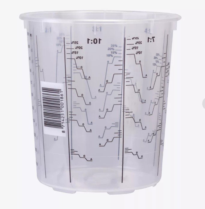 Удобный стакан для смешивания лаков, эмалей, тонировок в нужных количествах. Удобные рейки для процентного, весового или объёмного соотношения, нанесённые с наружной и внутренней сторон стакана помогут вам без труда смешать компаунды в нужных пропорциях.
